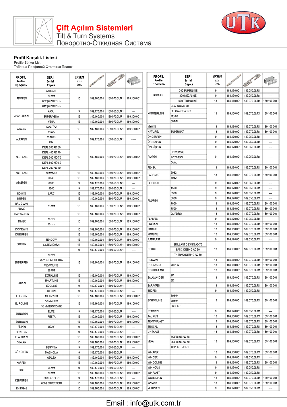 Pvc Sistemler İçin Kapı Kilitleri