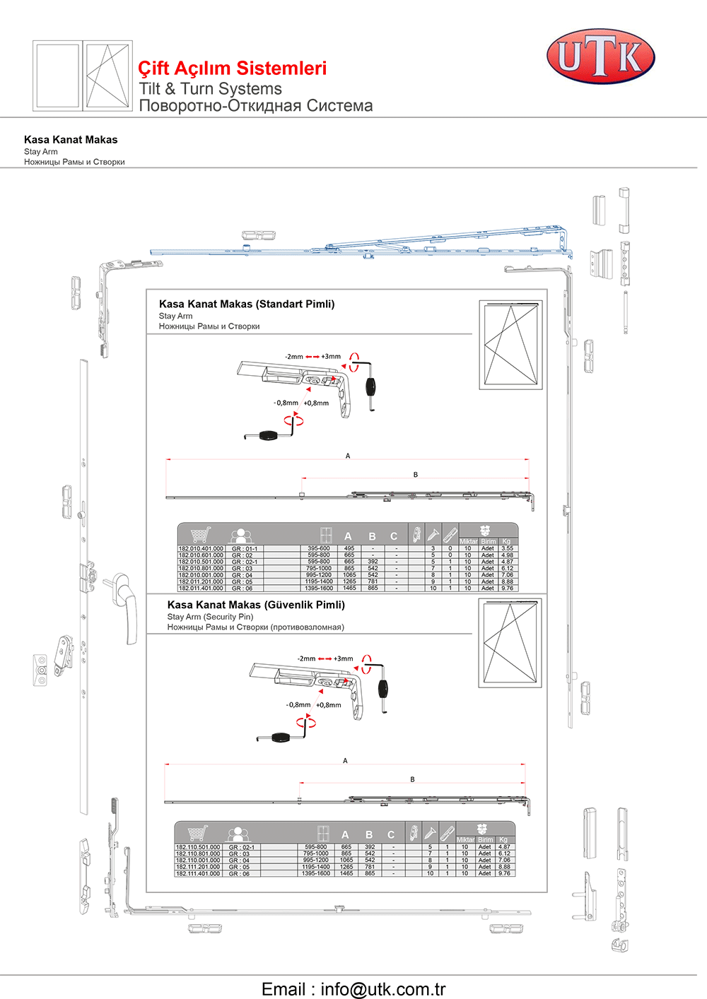Pvc Sistemler için Ayarlı Kapı Menteşeleri