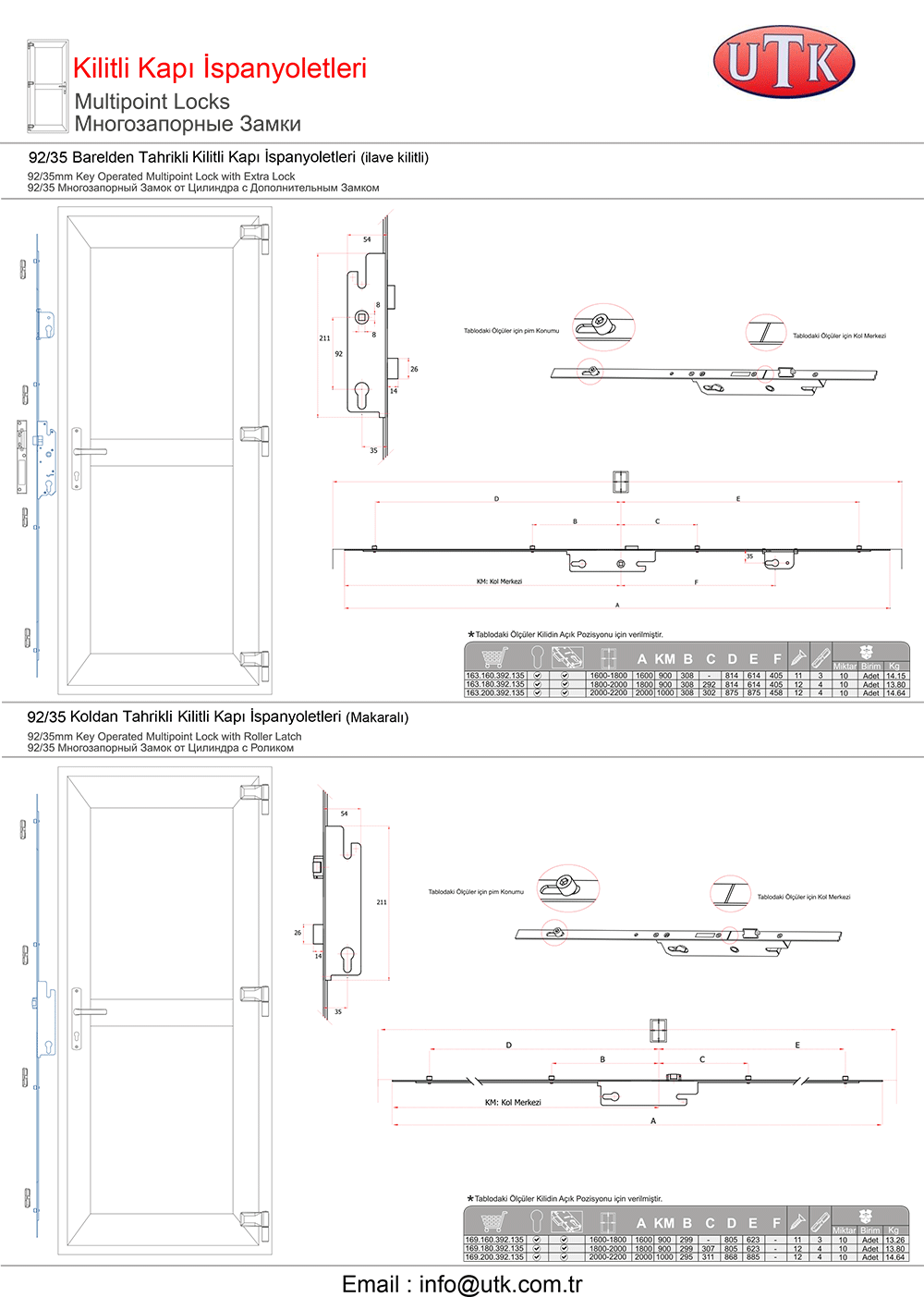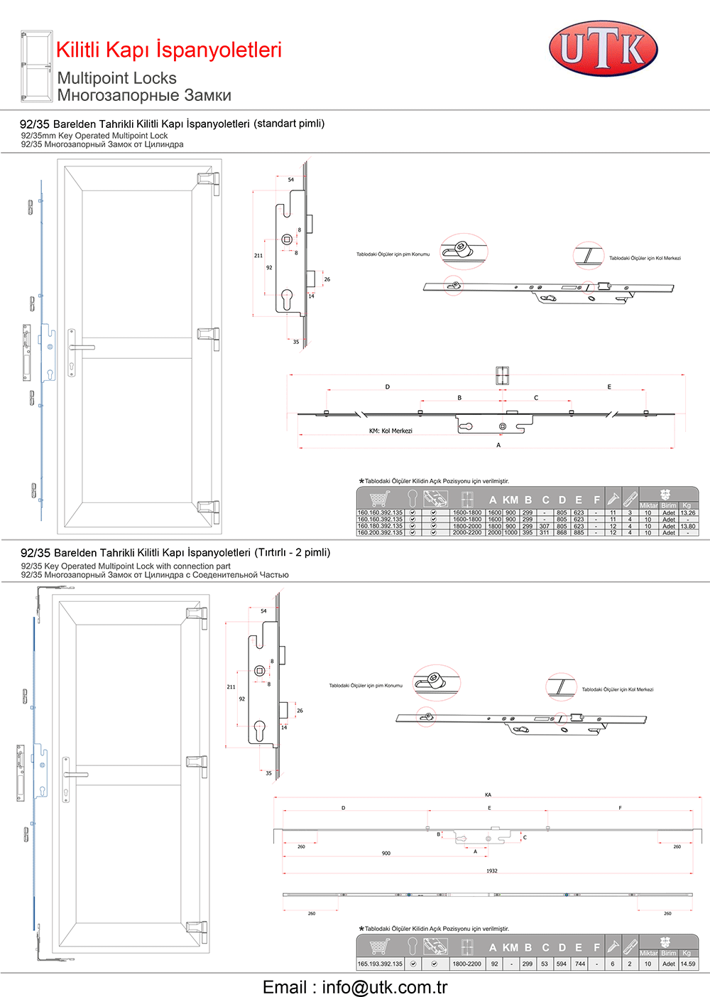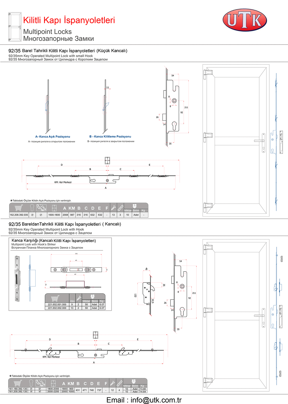 Pvc Sistemler İçin Kapı Kilitleri