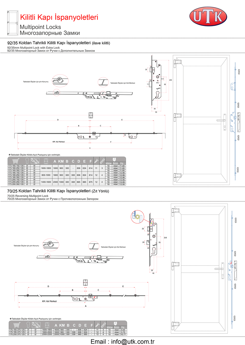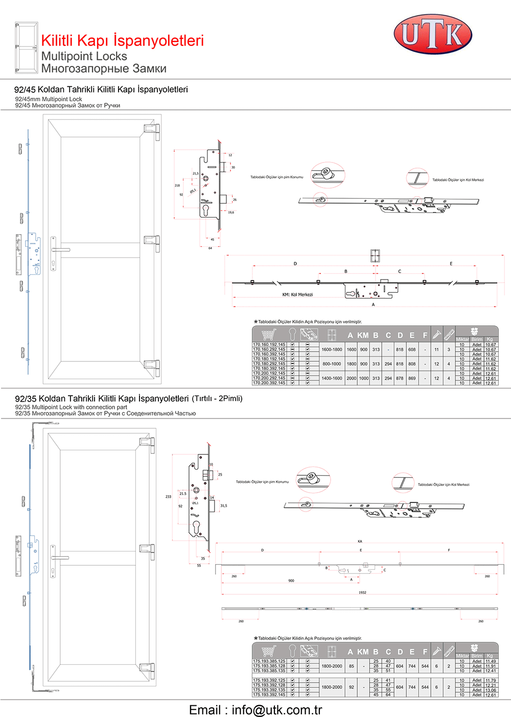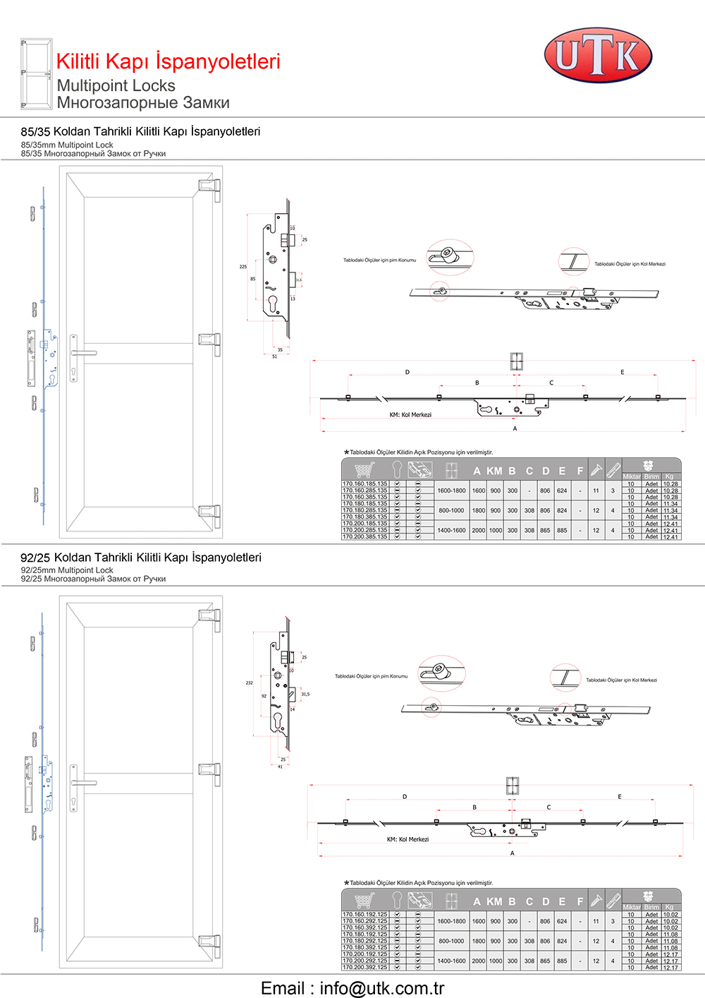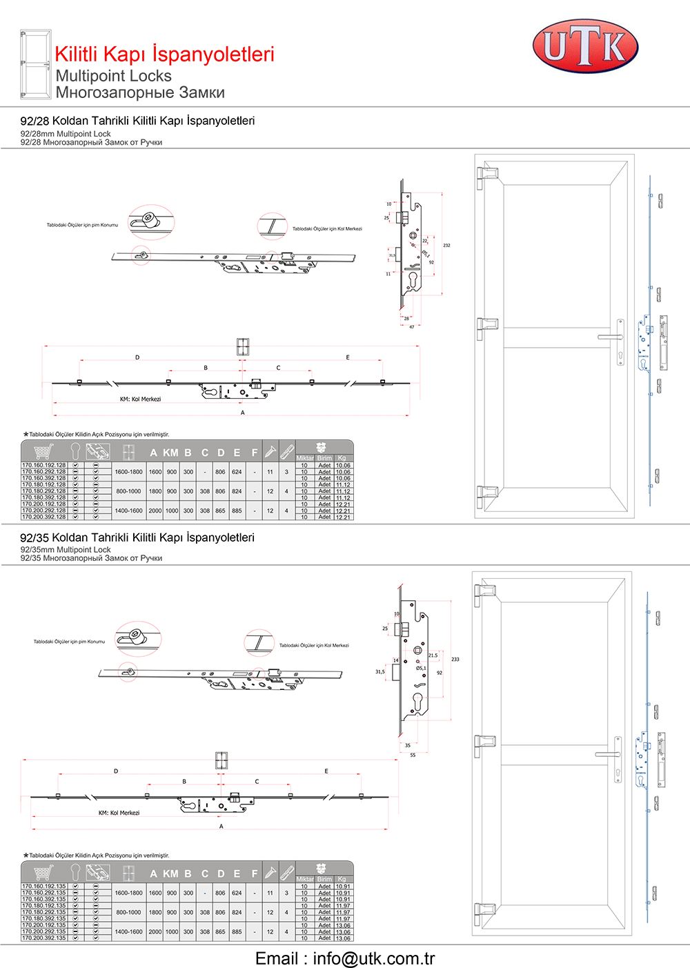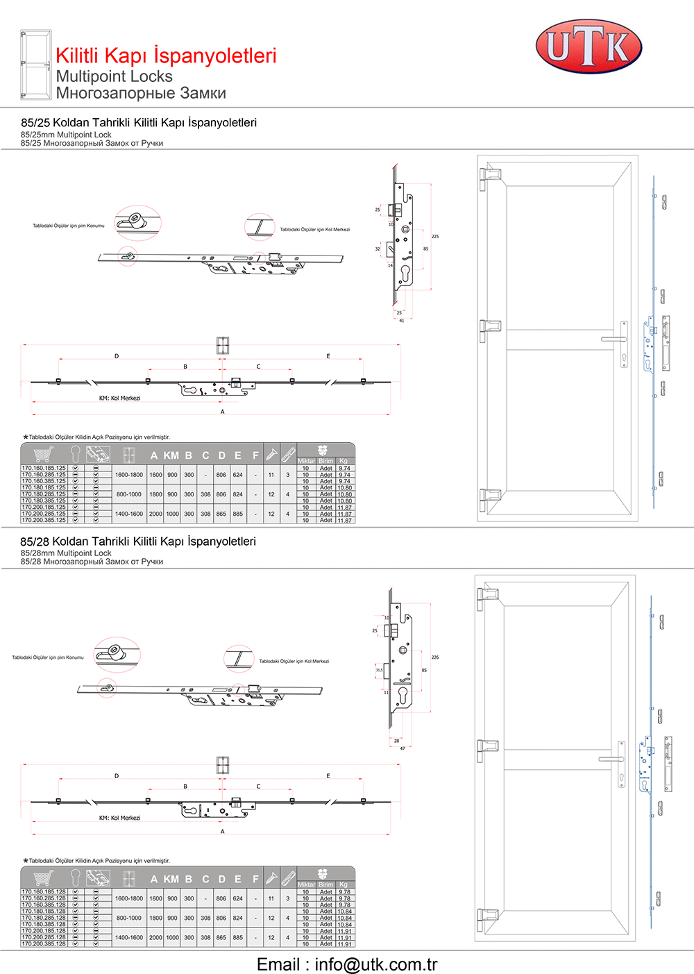 Pvc Sistemler İçin Kapı Kilitleri