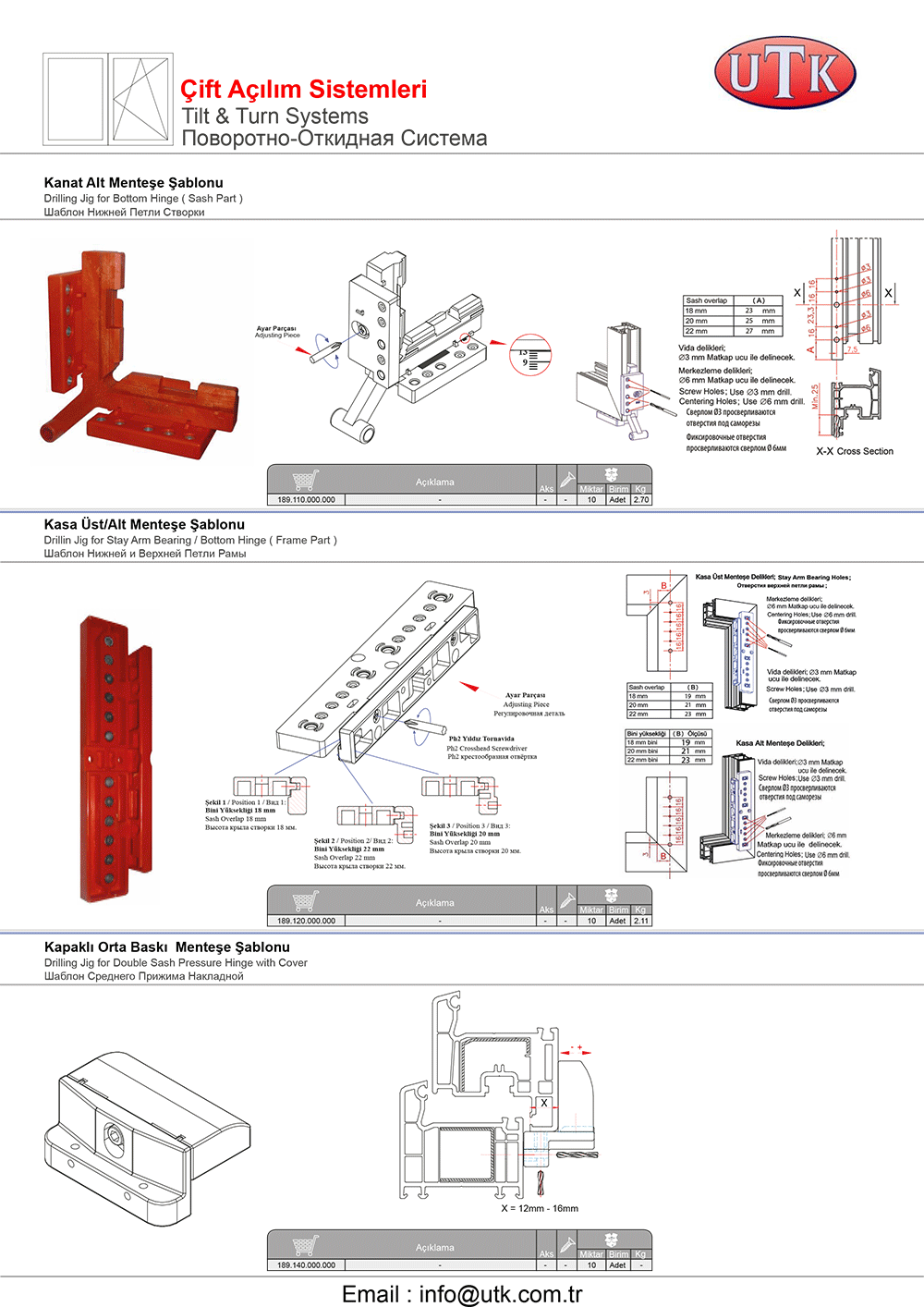 Pvc Sistemler için Ayarlı Kapı Menteşeleri