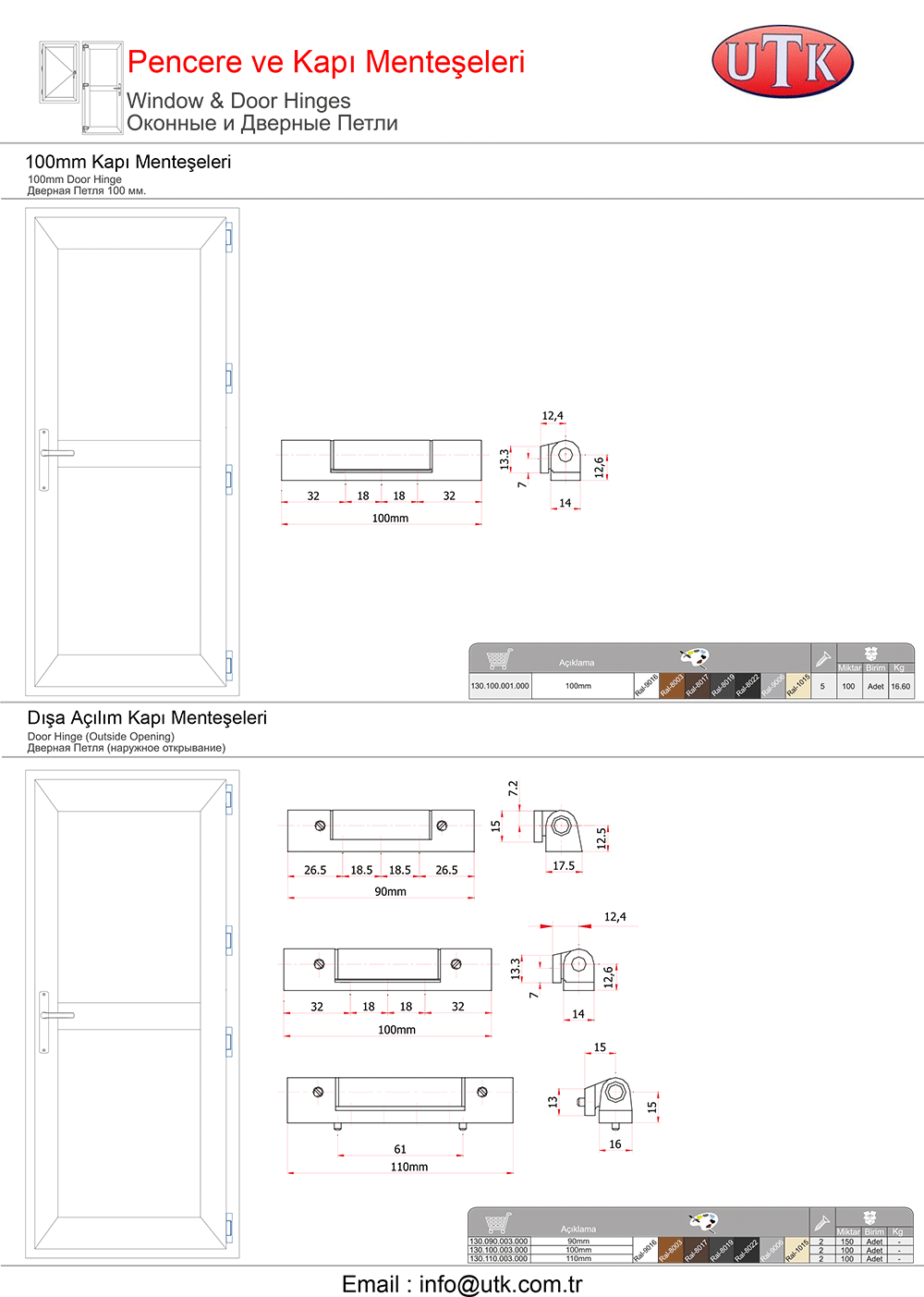 PVC Pencere Kapı Menteşeleri